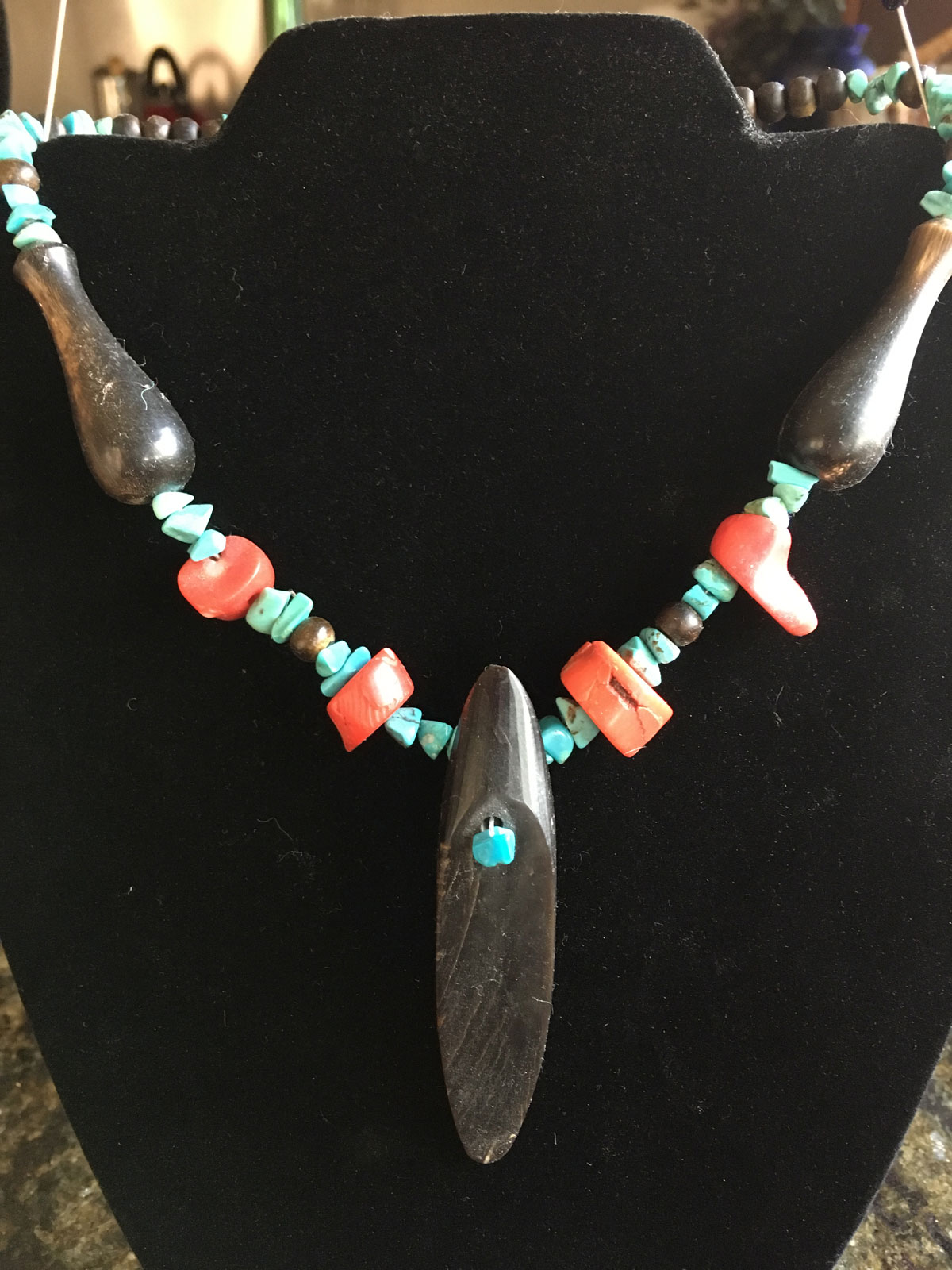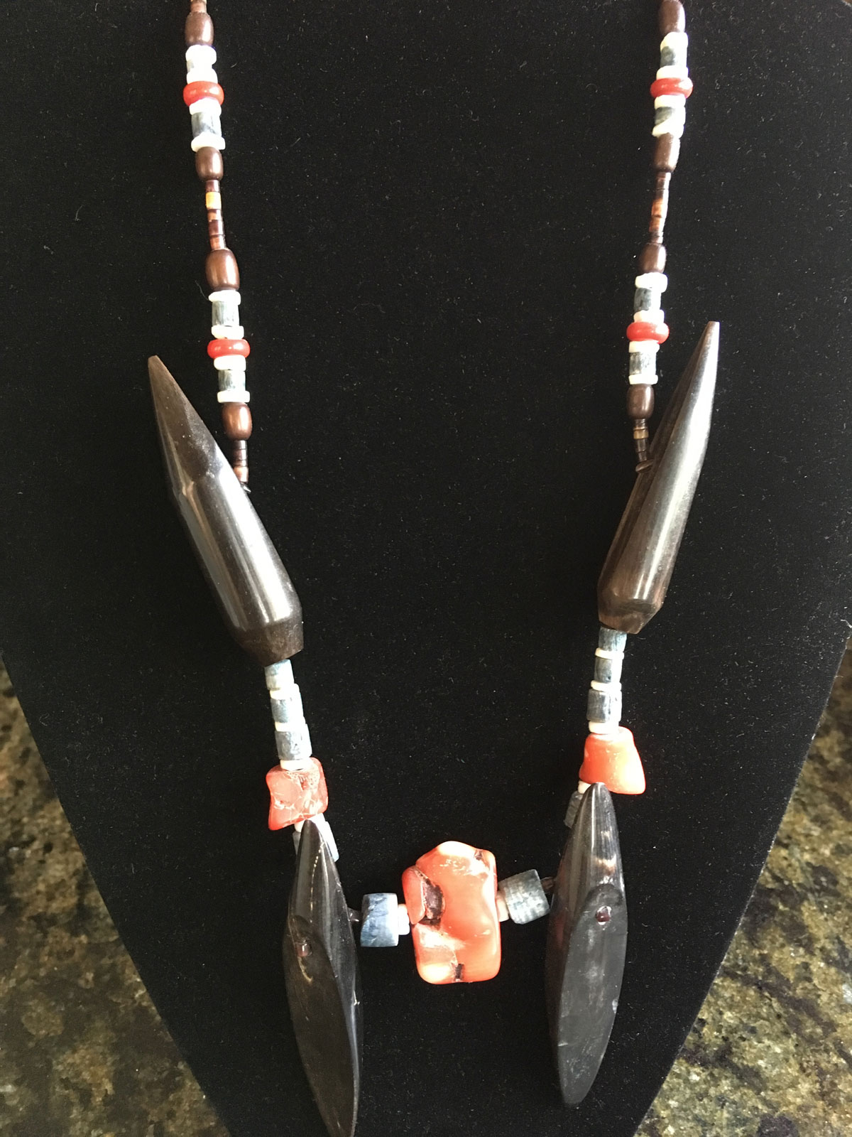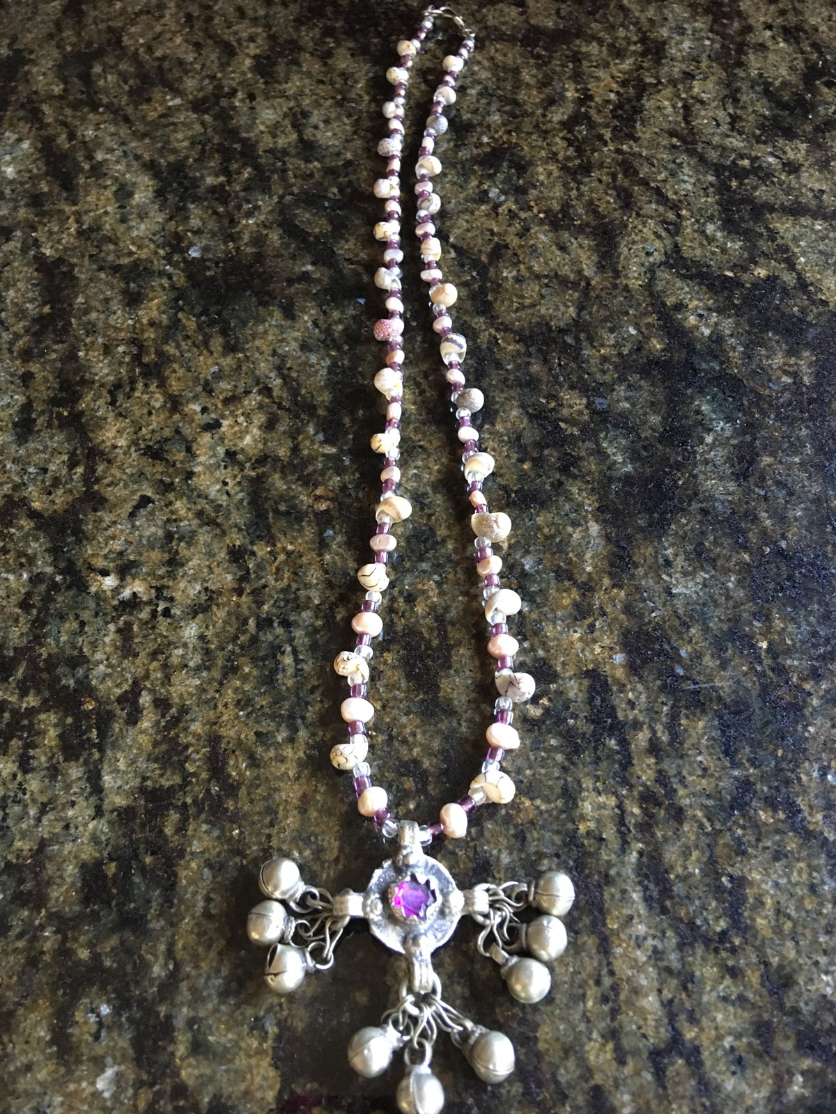 Antique Silver Talisman, Antique Moroccan Coral, Antique Glass, Pewter, Seeds