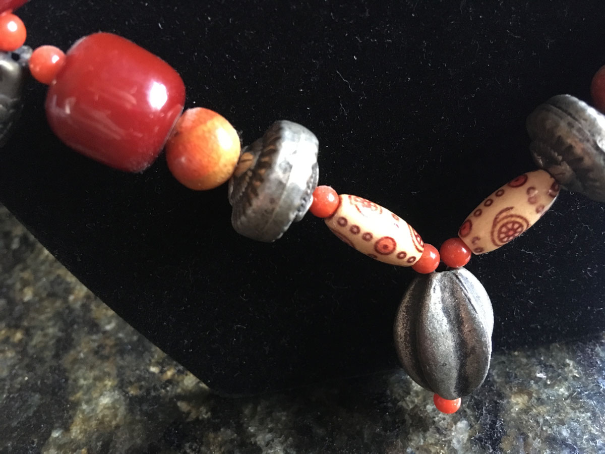 Antique Amber, Vintage Moroccan Silver Pewter, Apple Coral, Coral, Painted Seeds