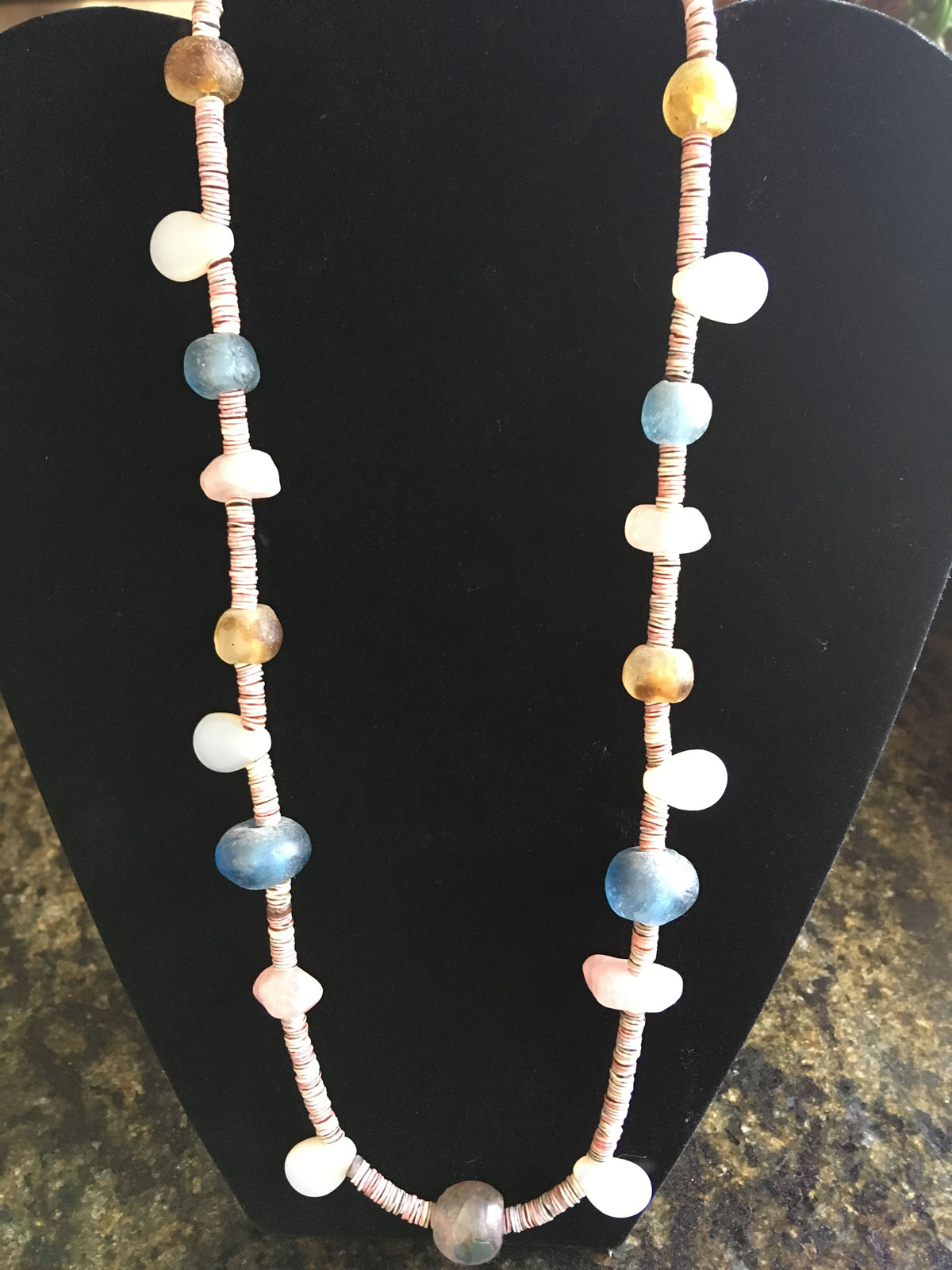 Antique Glass (Jerusalem), Vintage African Glass, Rose Quartz, Shell